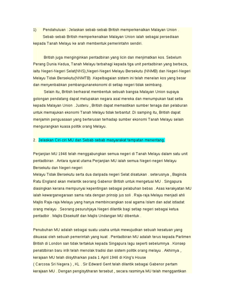 Cadangan jawapan kertas 3 tingkatan 5 bab 4 malayan union.